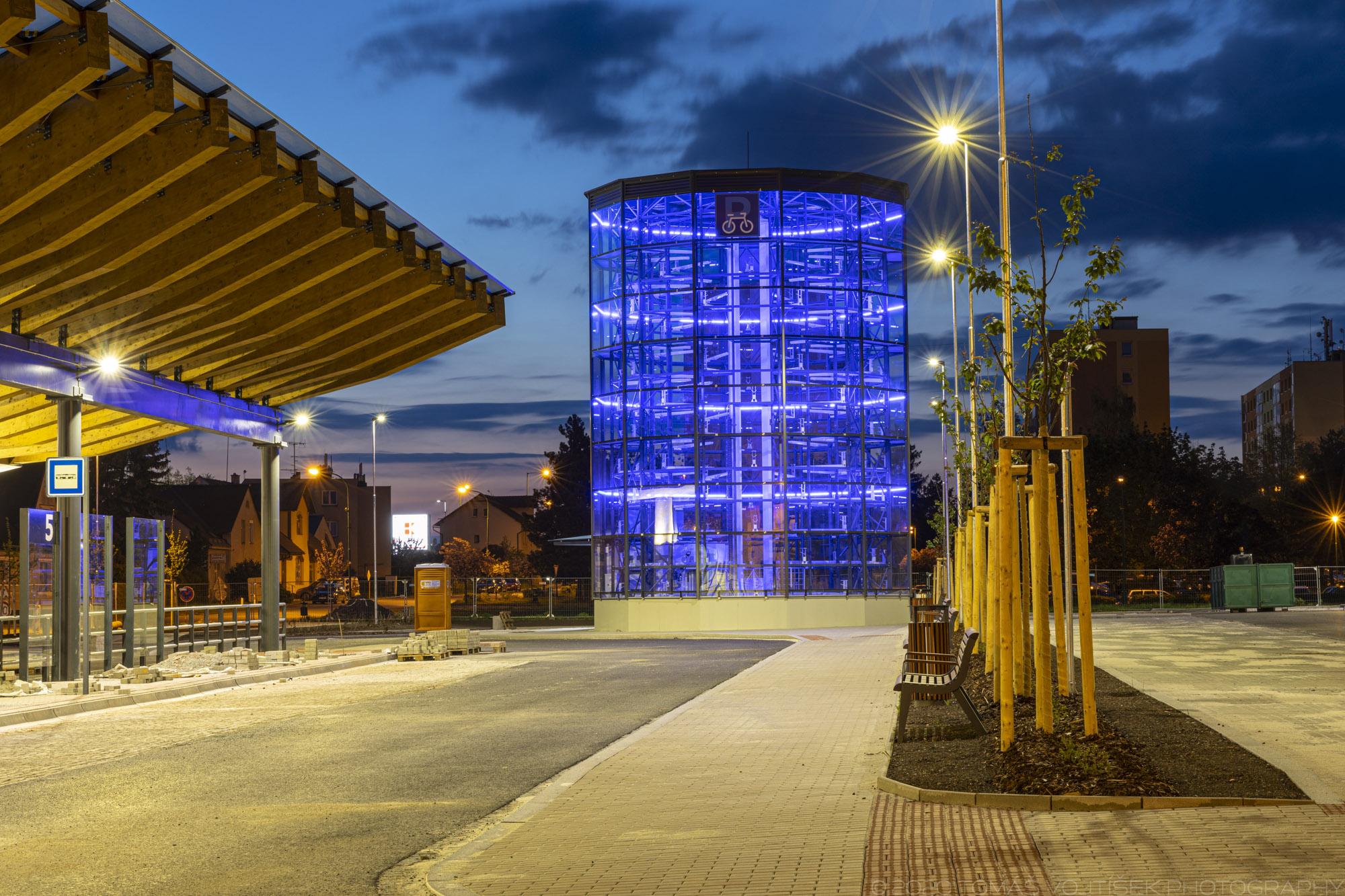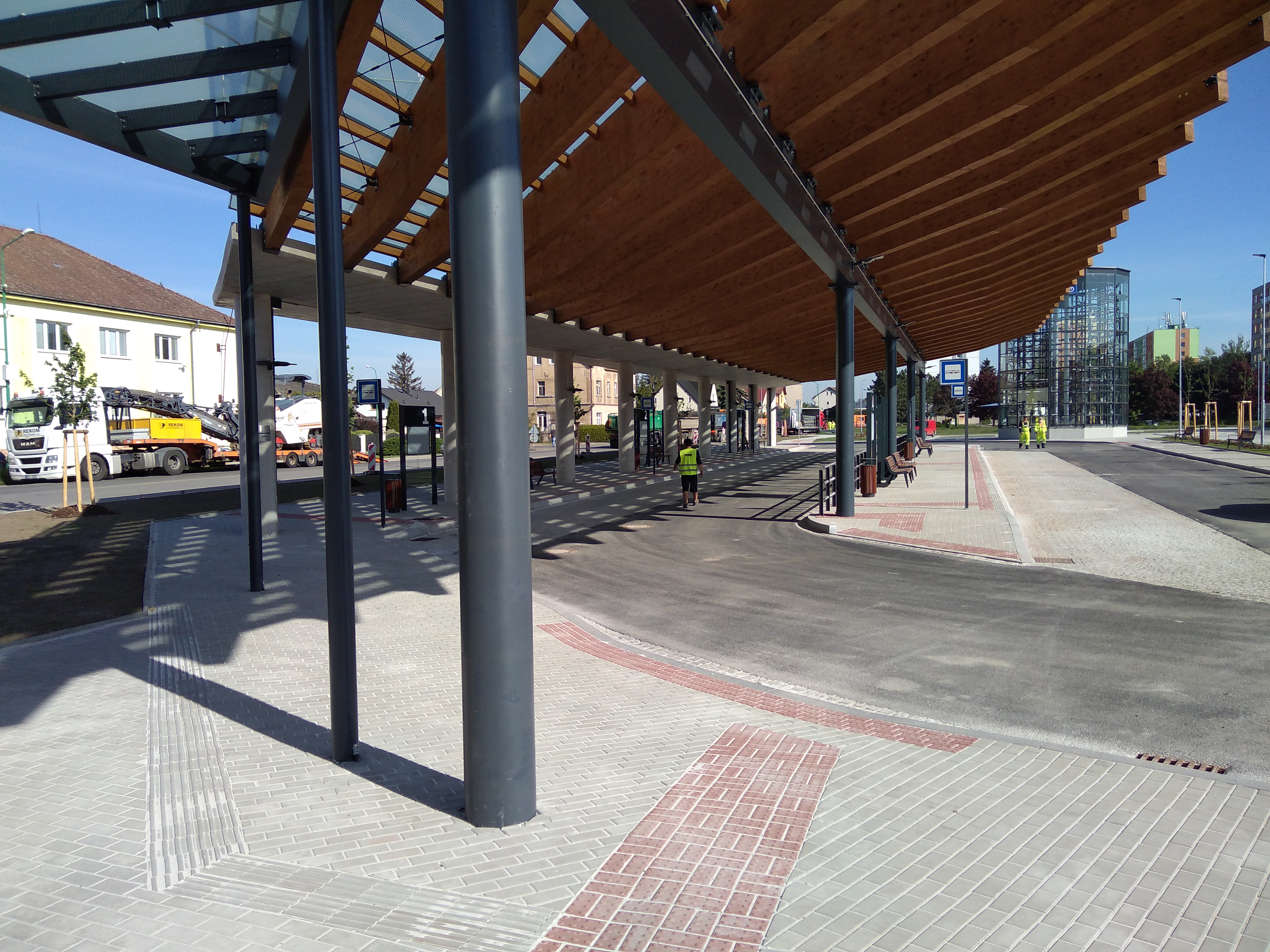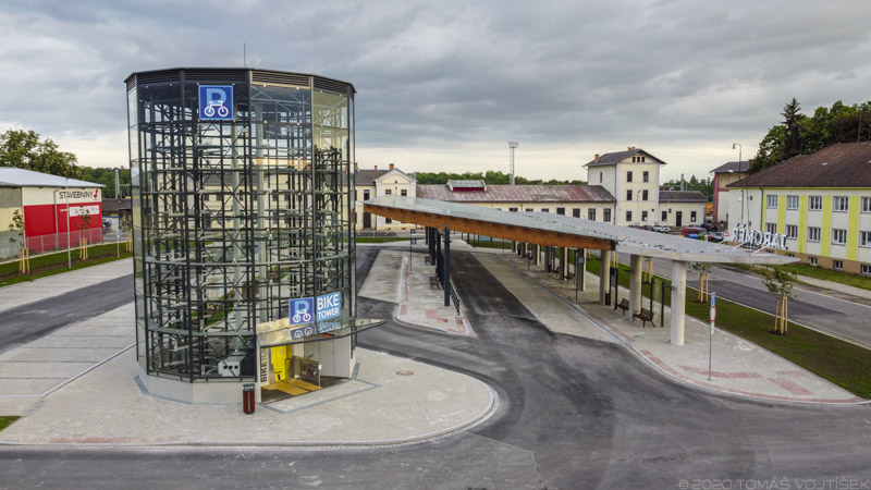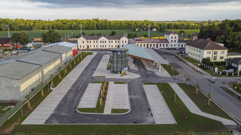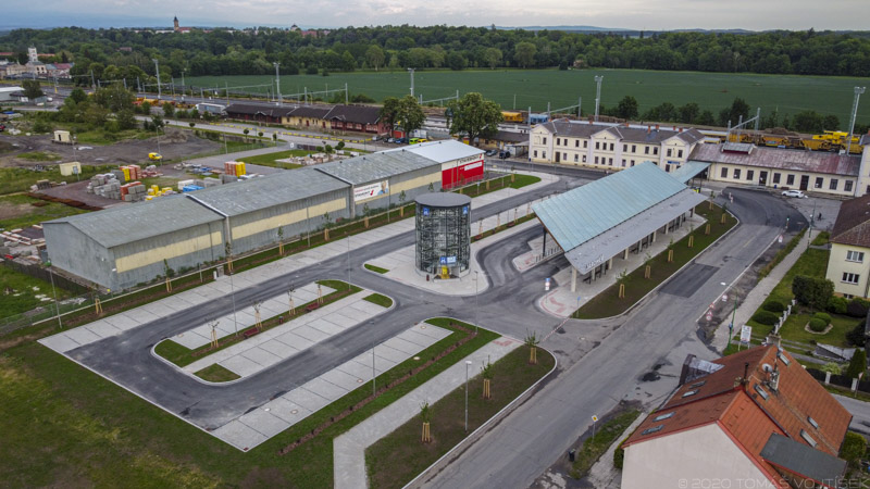 Předmětem projektu je stavba dopravního terminálu zahrnující 5 autobusových zastávek, konstrukci zastřešení těchto zastávek a konstrukci přechodu pro chodce a zastřešení tohoto přechodu. Dále pak navazující plochy zpevněných manipulačních ploch, chodníků a nezpevněné plochy včetně jejich sadových úprav. Součástí terminálu je také parkovací plocha pro 92 osobních automobilů v rámci parkovacího systému P+R a dále objekt automatizované kolárny, kde se nachází 118 míst pro jízdní kola v rámci parkovacího systému B+R. Nedílnou součástí je pak řešení inženýrských rozvodů, jejich připojení na veřejné sítě (dešťová kanalizace, NN), veřejné osvětlení a vybavení budovaných prostor mobiliářem (lavičky, odpadkové koše).